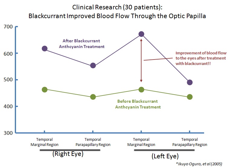 In a clinical study, scientists identified blackcurrant anthocyanins significant improved blood flow thru the optic nerve This (and other vision research: see here) demonstrates the incredible health effects of blackcurrant anthocyanins, potentially helping prevent blindness through Diabetic Retinopathy!!