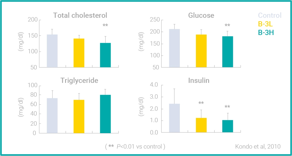 Eco Biota的雙歧杆菌B3X菌株具有良好的減肥作用,已在人體上作出研究。代謝綜合征和肥胖通常會導致高血脂、糖尿病前期和高血壓。這些都是被認為是心髒病和中風的危險因素。在動物實驗中,B3X抑制體重增加和體脂積累,並降低血糖和總膽固醇水平(森永,2013)。隨後,在體重指數(BMI)中等偏高、食用含B3X食物的人類受試者身上也顯示出類似的益處(Minami,2015)。