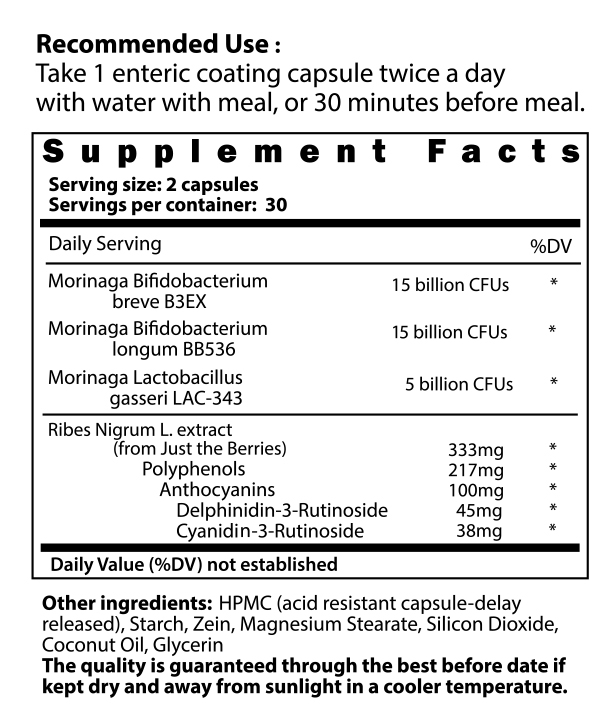 推薦使用 : 每天服用2次,每次1粒膠囊,推薦隨餐或用餐前30分鐘配水服用,以最大限度地被腸道吸收